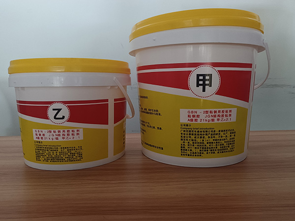 GBN-2型粘钢胶“固百年”粘钢胶为双组份改性环氧树脂胶粘剂,高分子材料。主要用于把钢板粘贴到加固构件(如梁、板、柱、新开门洞等)受力区域表面,使其共同支力从而提高构件承载力和刚度。配胶比例为甲:乙=2:1